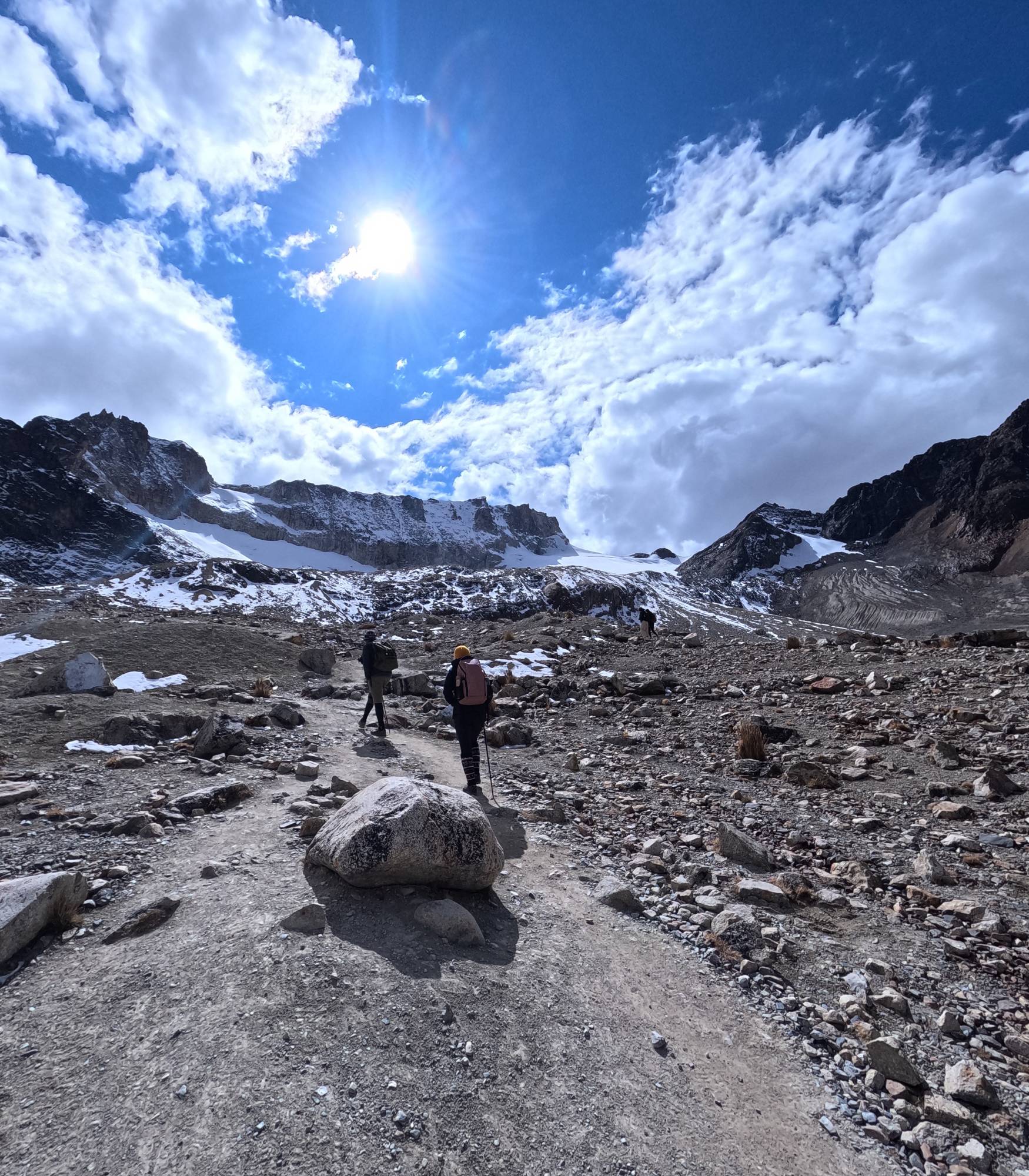 As the day progresses, the hike back to the starting point marks the end of the tour. We will then walk for approximately 1 hour to catch our transportation, returning to the city of La Paz at approximately 3:30 p.m., enriched by the unforgettable views and experiences of Nevado Charquini and Laguna Esmeralda.
